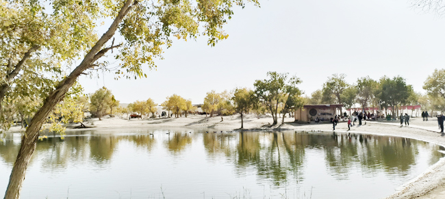 为让游客深度领略秋日胡杨之美,当地精心推出多样化观赏体验项目。游客可乘坐游船穿梭于罗布湖间,近距离捕捉胡杨与水共生的灵动景致;也能搭乘热气球缓缓升空,从高空俯瞰整片胡杨林的壮阔全貌,将沙漠、湖泊与金色林海构成的秋日画卷尽收眼底。