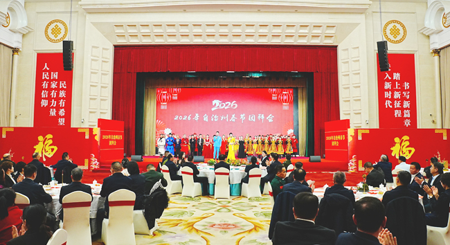 2月12日,2026年巴州春节团拜会在库尔勒举行,各族各界代表欢聚一堂、辞旧迎新。(记者 薛兵 摄)