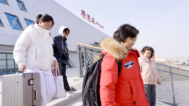 崭新的城际列车正载着无数人盼望团圆的心愿,一路向前飞驰。离家半年多的姜财梅带着孙女,望着窗外越来越熟悉的风景,知道很快就能见到心心念念的家人了。记者问姜财梅:“回去准备做点什么呢?”姜财梅高兴地说:“回去会去走亲戚,给孩子们做点吃的,要是孩子们不需要我帮忙,就出去跳跳广场舞,也潇洒潇洒。”