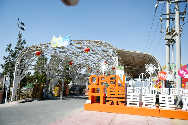 库尔勒市阿瓦提乡香梨小镇一角。(记者 薛云少 摄)