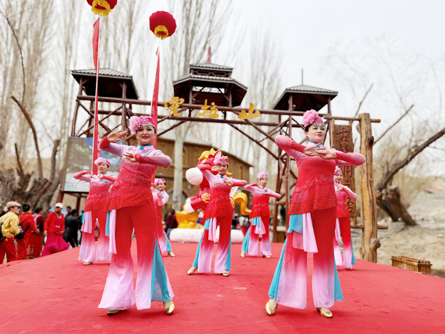 开园仪式上,演员们跳起欢快舞蹈迎接八方来客。(通讯员 买兰艳木·艾沙 摄)
