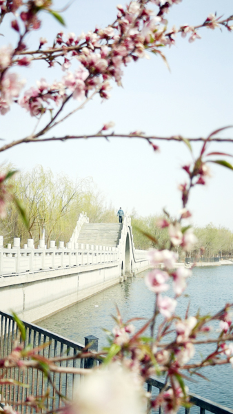 4月1日,库尔勒市杜鹃河生态湿地公园春意盎然。河畔杨柳吐绿,柔枝轻拂水面;榆叶梅竞相绽放,粉艳满枝;小桥流水相映,景致如画。市民漫步其间,踏青赏花,尽享梨城春日生态美景。(记者 薛兵 摄)