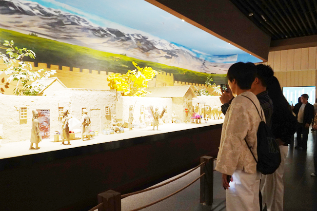 节日期间,游客在巴州博物馆参观。(记者 赵爽 摄)