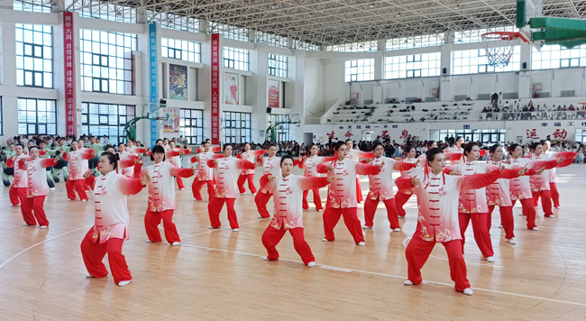 本次比赛设置了八段锦、24式简化太极拳两大项目,吸引库尔勒市14支代表队、180余名教职工同台竞技。赛场上,随着悠扬舒缓的音乐响起,参赛队员个个精神抖擞,眼神中透着专注与坚定,衣角随招式轻扬,动作如行云流水——时而如白鹤亮翅,舒展优雅;时而似野马分鬃,刚劲有力。各代表队服装色彩鲜明、整齐统一,队员们转身、抬手、迈步皆精准同步,在默契配合中尽显团队风采,每一轮精彩展示都引得现场观众报以热烈掌声与喝彩声。