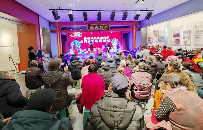 21日,巴州铸牢中华民族共同体意识主题展馆内丝弦悠扬,掌声阵阵,“艺韵榴香”文艺角豫剧经典折子戏专场火热开演。