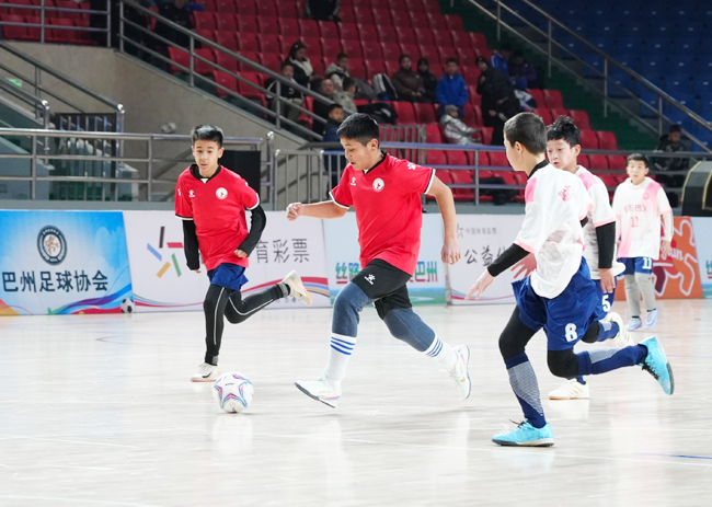 1月28日,“奔跑吧·少年”2026年巴州青少年室内五人制足球交流赛在巴音体育馆开赛。图为比赛现场。(记者 赵富强 摄)