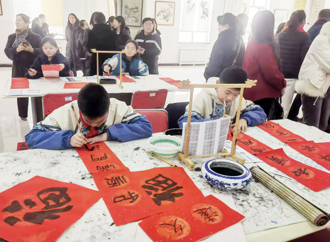 当天,该校还举办迎新春书画艺术展,并设置“非遗焕新”作品展示、百福打卡墙、新春笔艺会等环节,让大家驻足体验、即兴创作。