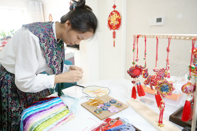 “技艺只有与生活相融,才能真正拥有生命力。”她指着一件运用盘扣工艺打造的生肖马作品说,传统盘扣本是服饰上的配件,如今被做成胸针、发夹、车挂等文创好物,技法依旧是老技法,却真正走进了现代人的日常生活。