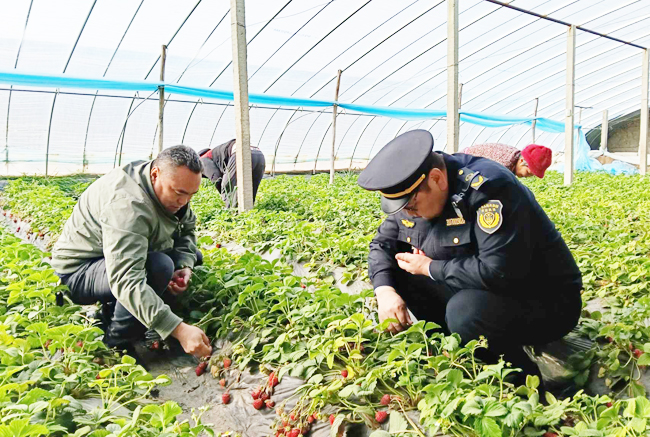 眼下,大棚草莓进入采摘高峰期并集中上市。连日来,巴州农业农村局组织州农业综合行政执法支队、州农产品质量安全检验检测中心,联合开展草莓质量安全专项抽检行动,严把草莓上市质量关,确保消费者吃得放心、安心。
