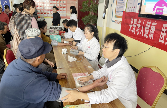活动现场人头攒动,前来咨询问诊的村民络绎不绝。来自县域医共体和县疾控中心(卫生监督所)的医务人员为村民测量血压、检测血糖,耐心细致地问诊查体、分析病情,针对高血压、糖尿病、关节炎等常见慢性病及老年病,逐一答疑解惑,结合村民身体状况量身制定用药指导、饮食调理与康复建议。