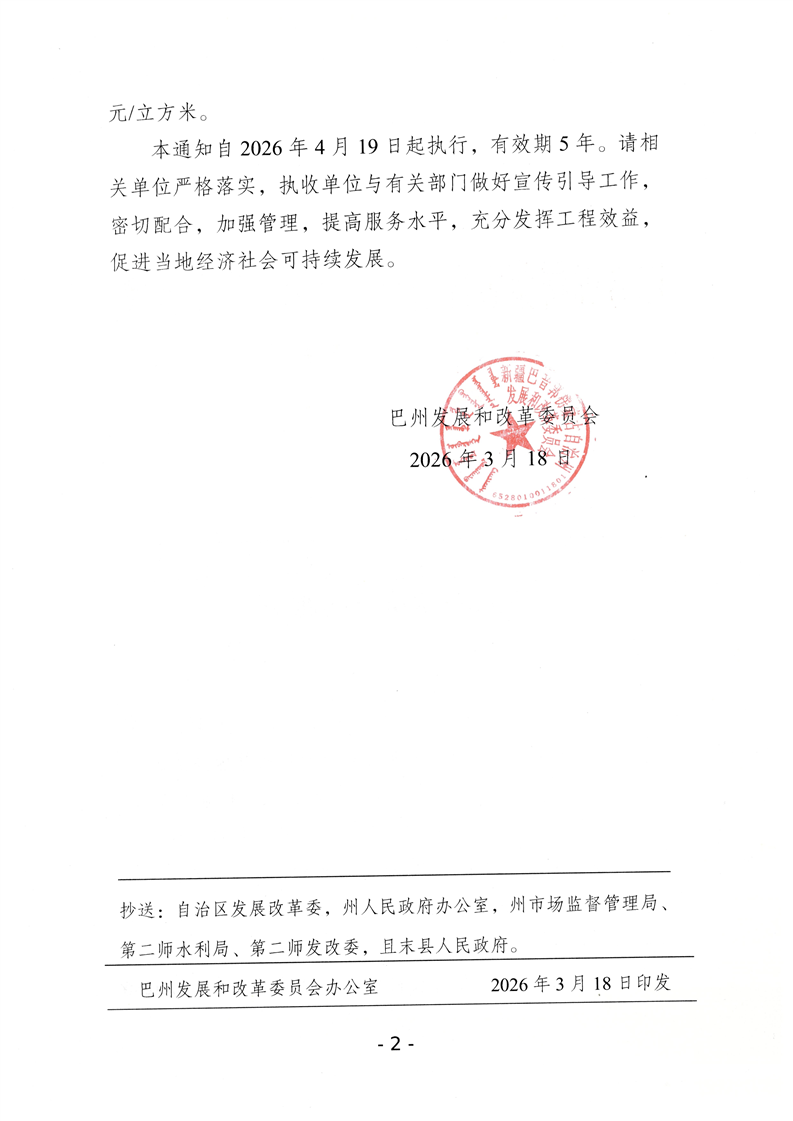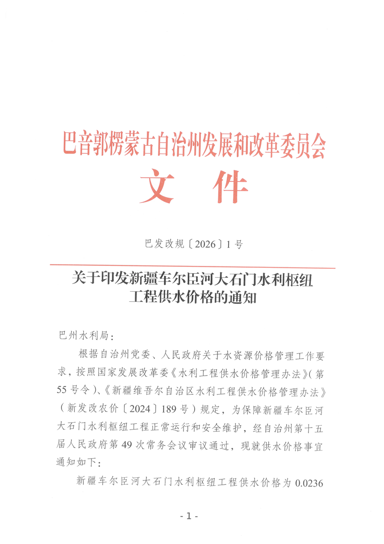 关于印发新疆车尔臣河大石门水利枢纽工程供水价格的通知