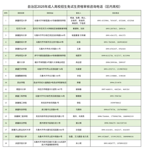 考生可登录新疆教育考试院官方网站查看《关于做好新疆维吾尔自治区2025年成人高校考试招生工作的通知》详细内容。《新疆维吾尔自治区2025年成人高校招生照顾加分登记表》《新疆维吾尔自治区2025年成人高校招生免试入学申请表》考生在新疆教育考试院官方网站下载。