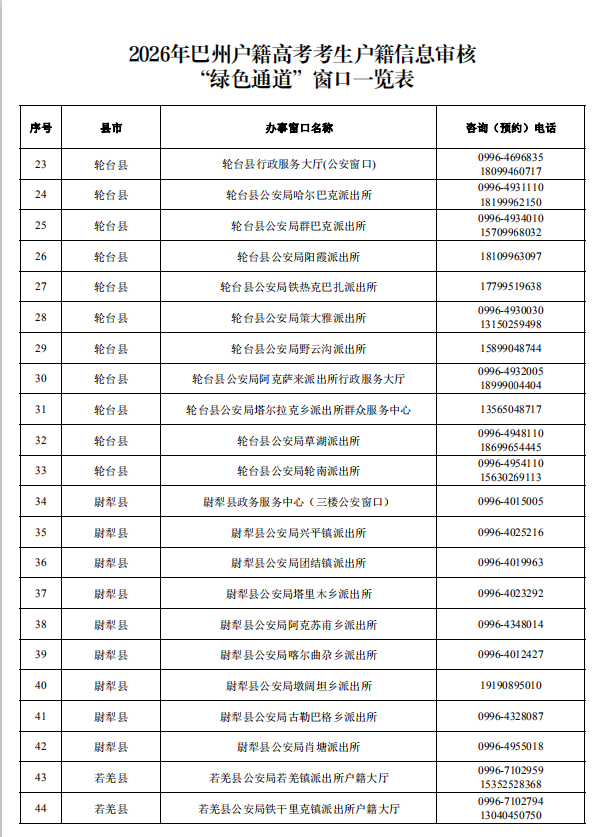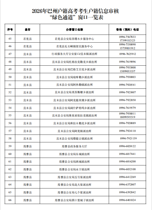 关于启动2026年巴州户籍高考考生户籍信息审核“绿色通道”窗口的公告