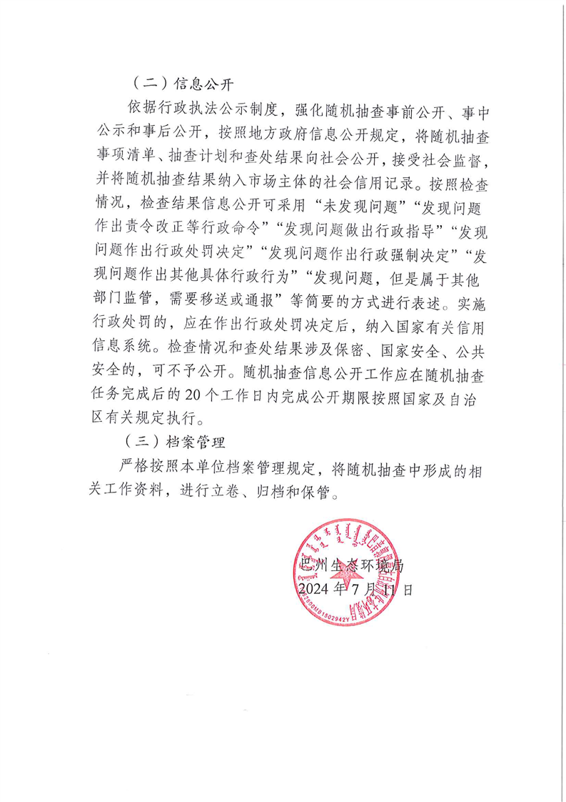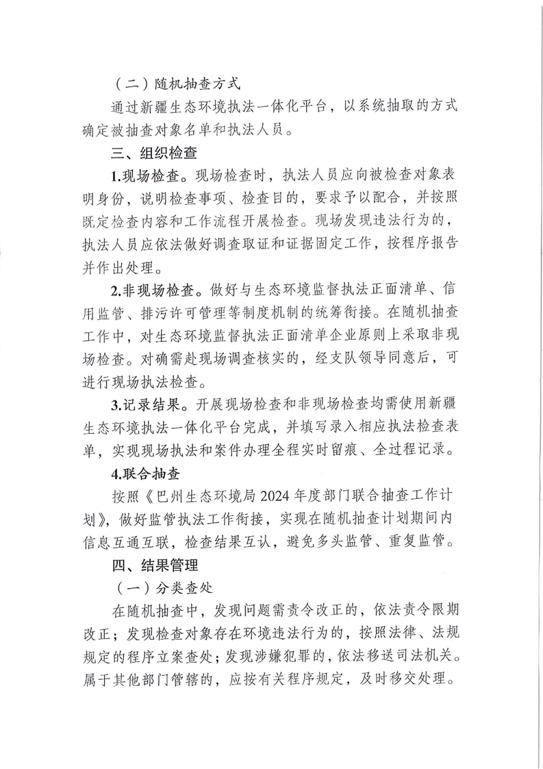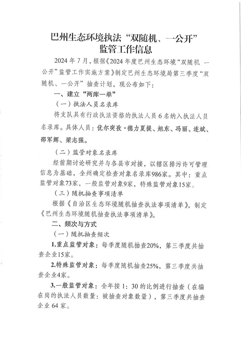 巴州生态环境执法“双随机、一公开”监管工作信息