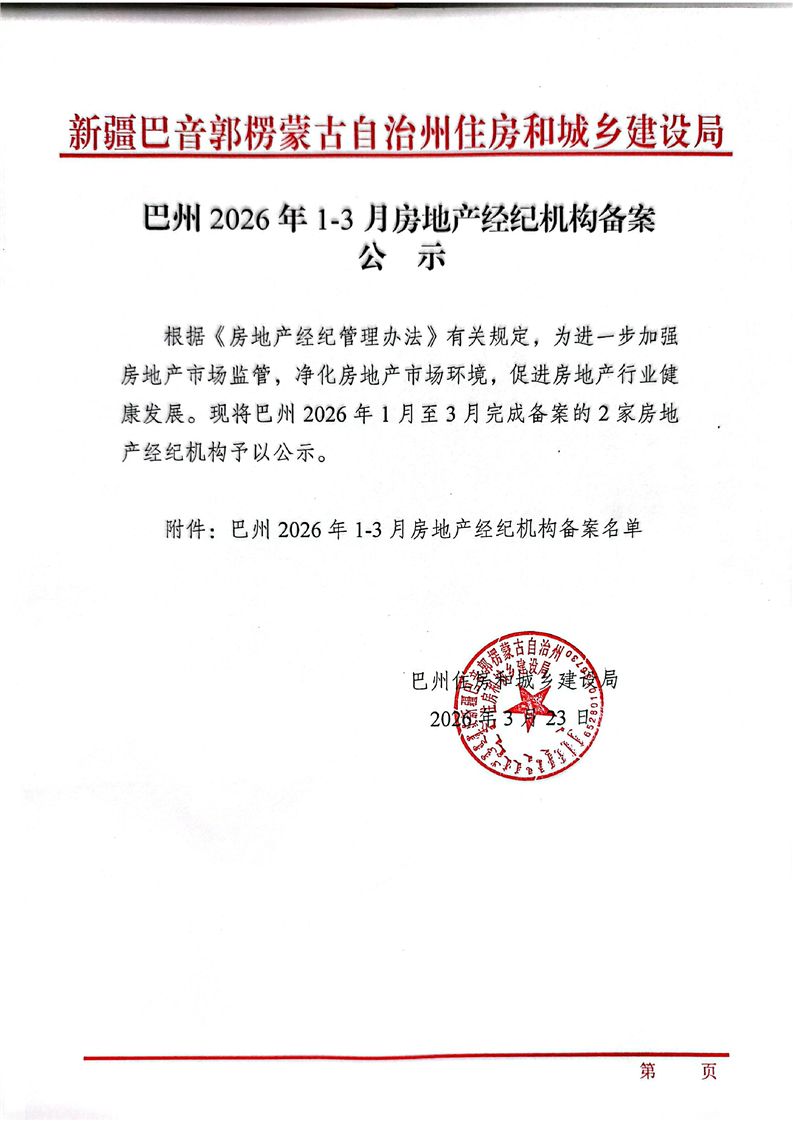巴州2026年1-3月房地产经纪机构备案公示