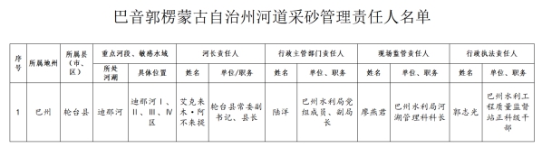 巴州重点河段、敏感水域采砂管理责任人名单