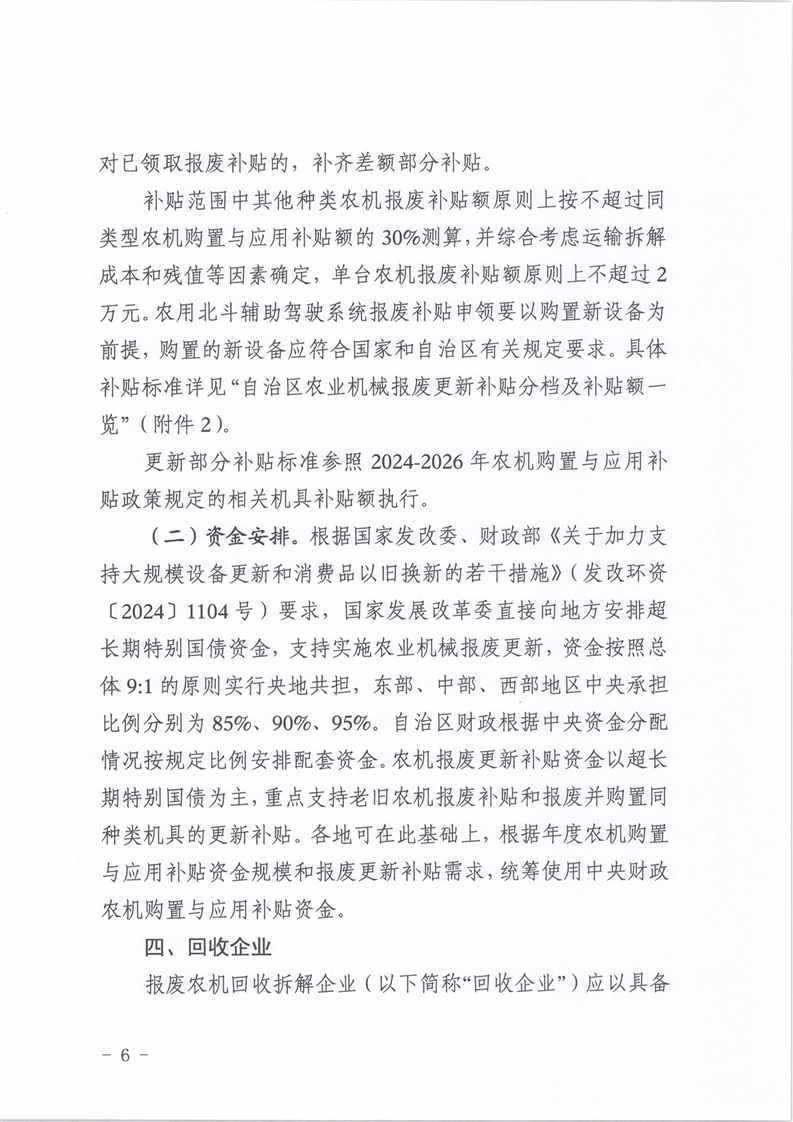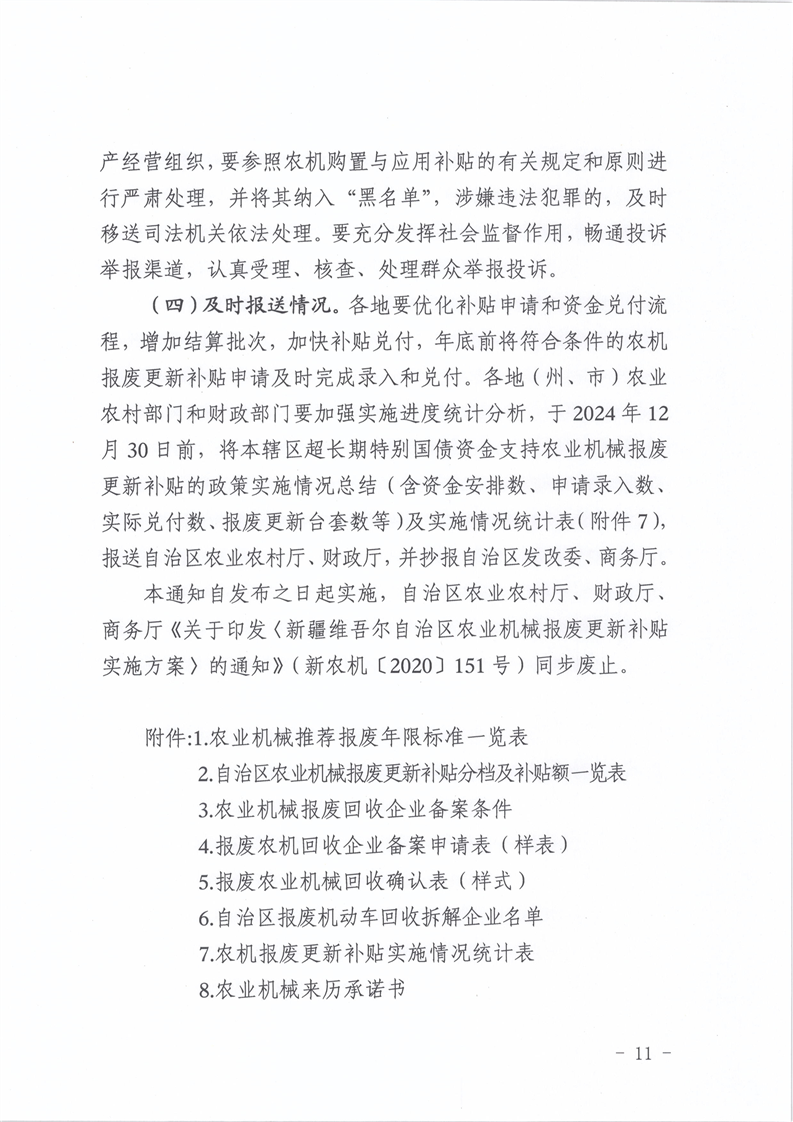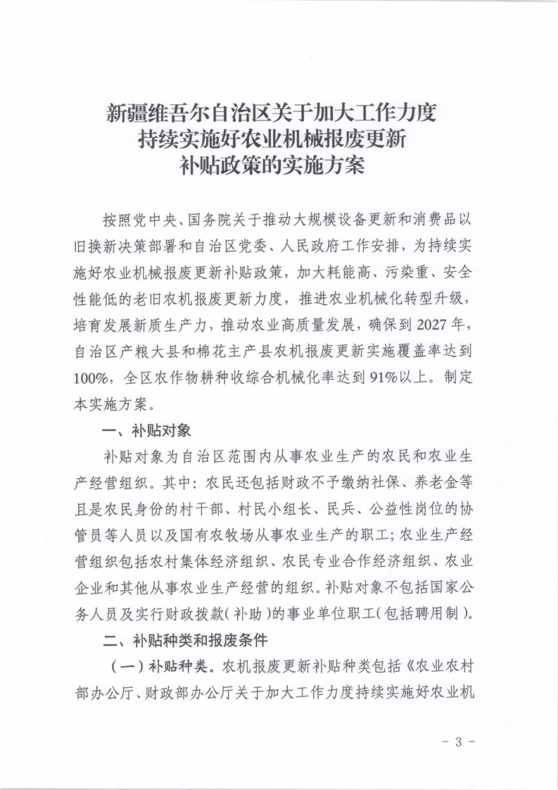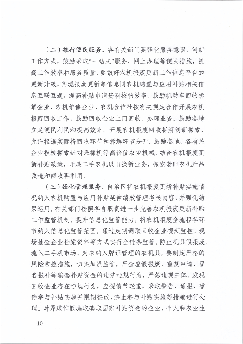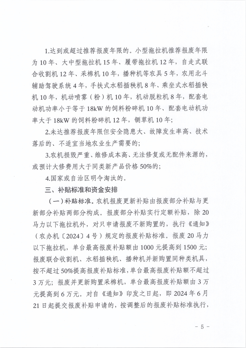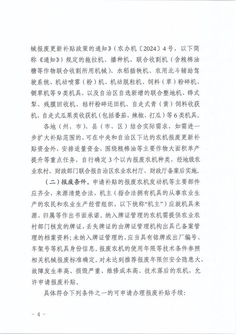 关于印发《自治区关于加大工作力度持续实施好农业机械报废更新补贴政策实施方案》的通知