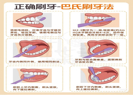 ✅正确做法:采用巴氏刷牙法,牙刷毛与牙面呈45度角,轻轻按压在牙龈边缘,小幅度水平震颤,再顺着牙缝上下刷,每个区域刷30秒。全程用力以“按压海绵不塌陷”为宜,电动牙刷无需额外加压,依靠震动清洁即可。