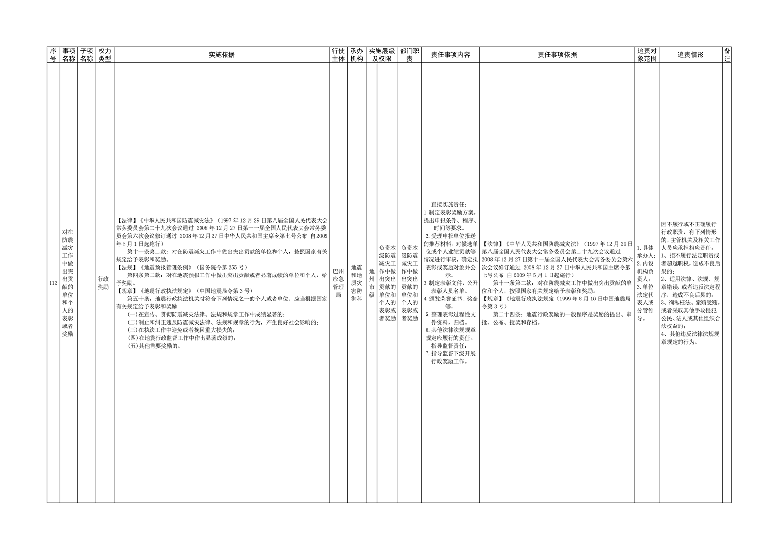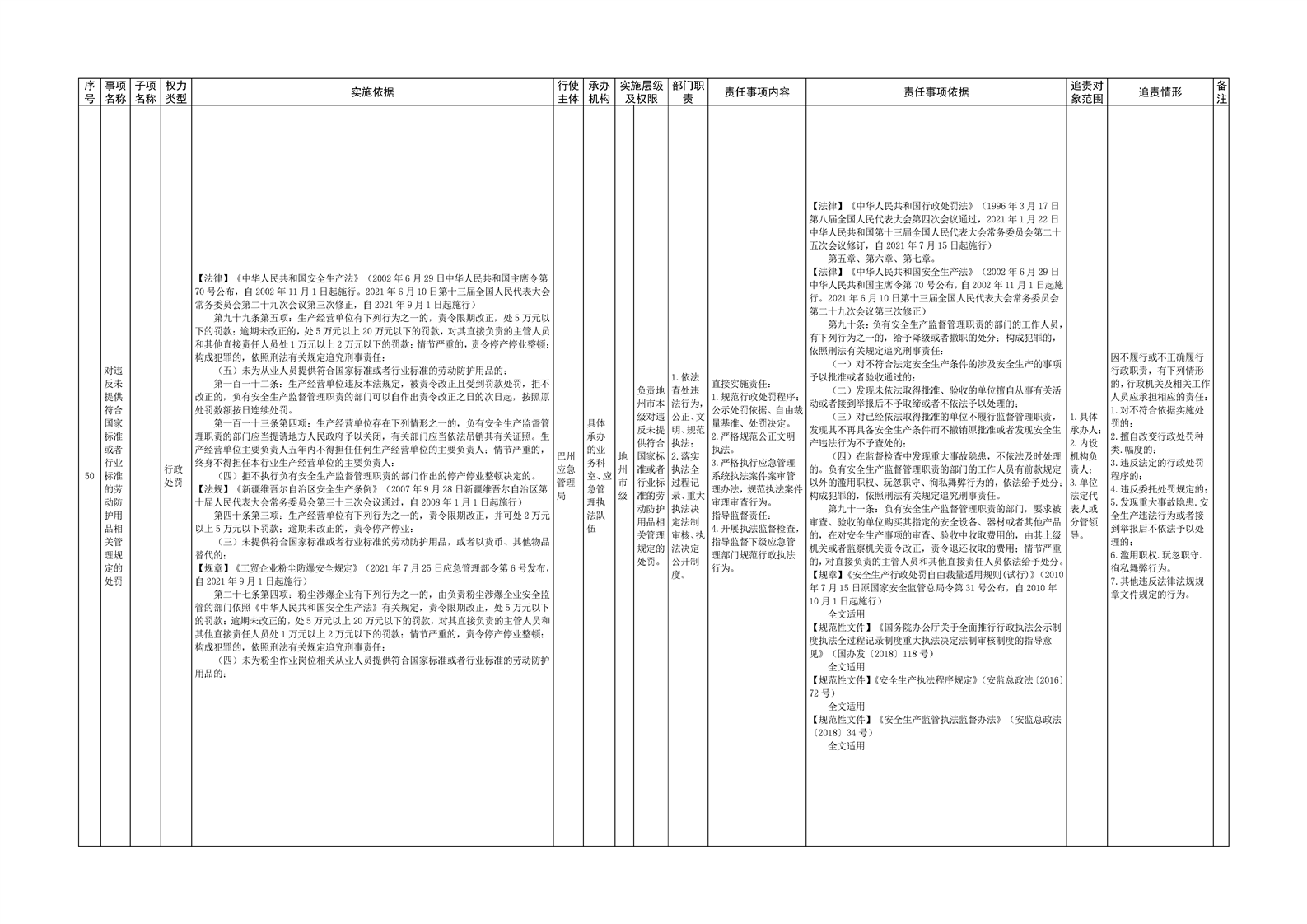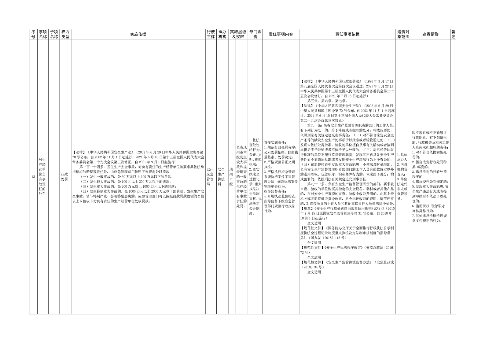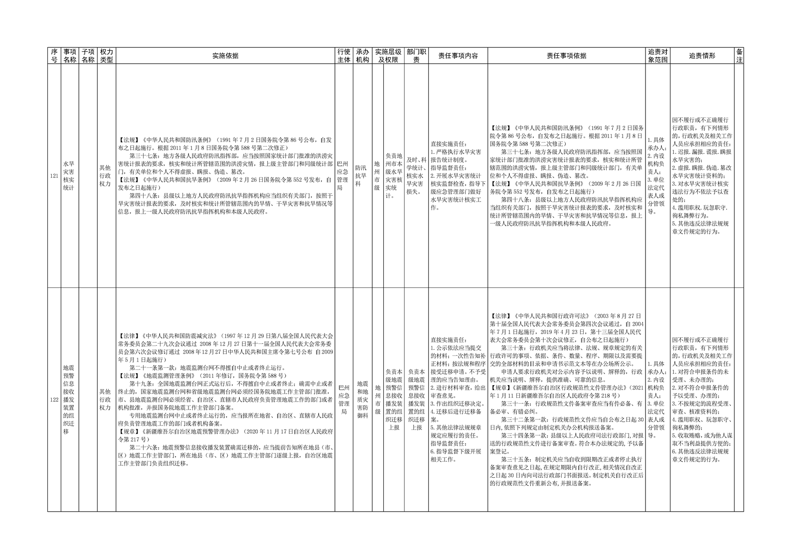 自治州应急管理局权责清单目录