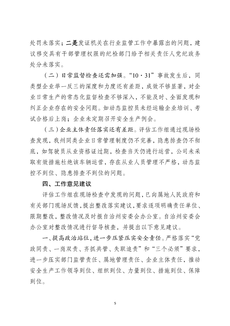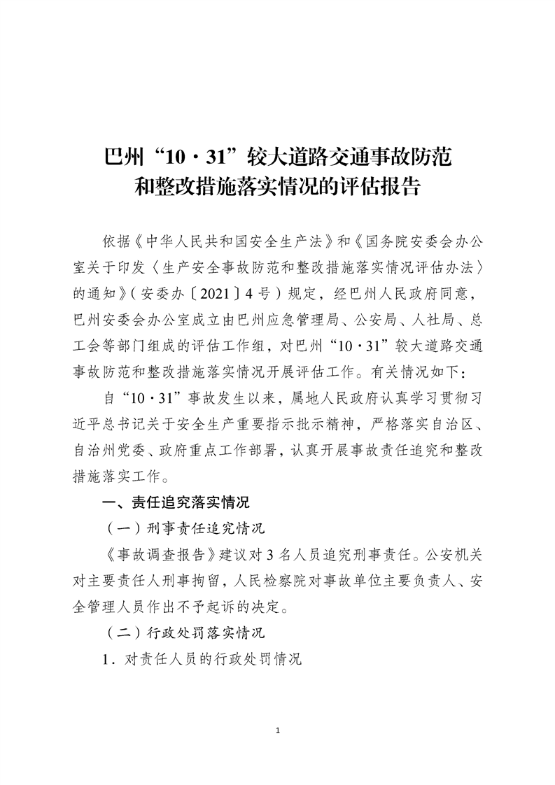 巴州“10·31”较大道路交通事故防范和整改措施落实情况的评估报告