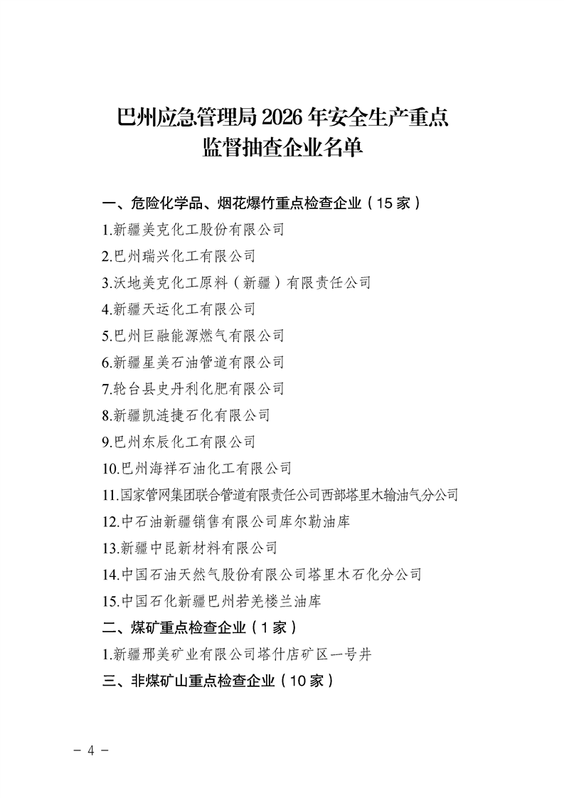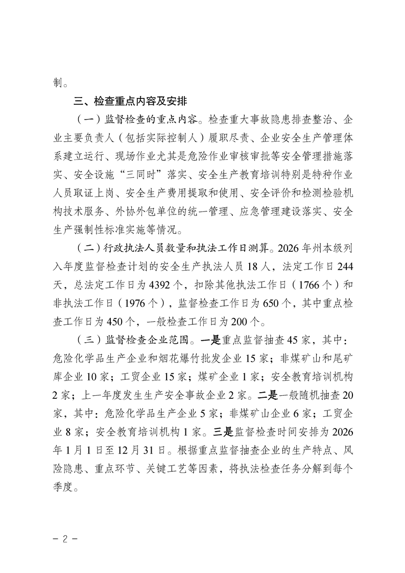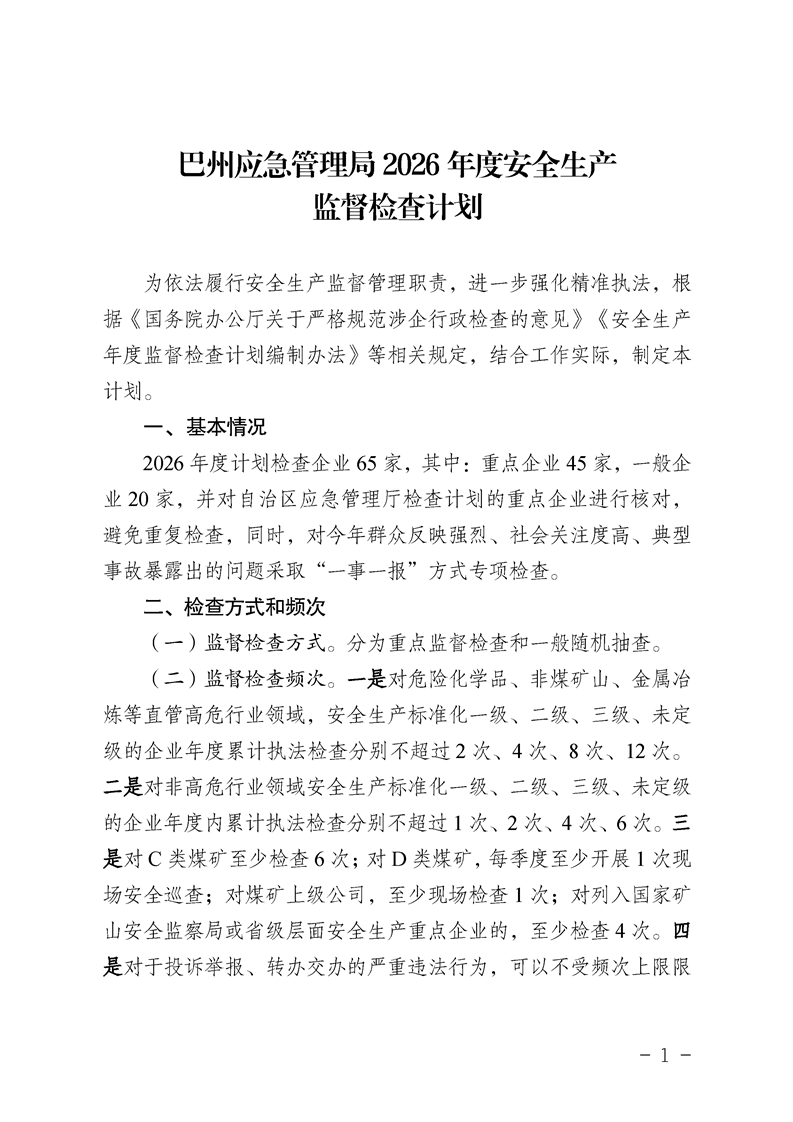 巴州应急管理局2026年度安全生产监管执法工作计划