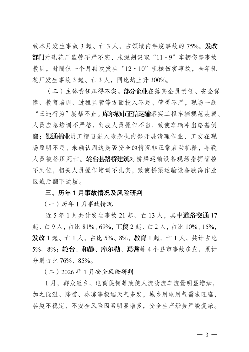 2025年12月自治州生产安全事故分析及2026年1月风险研判