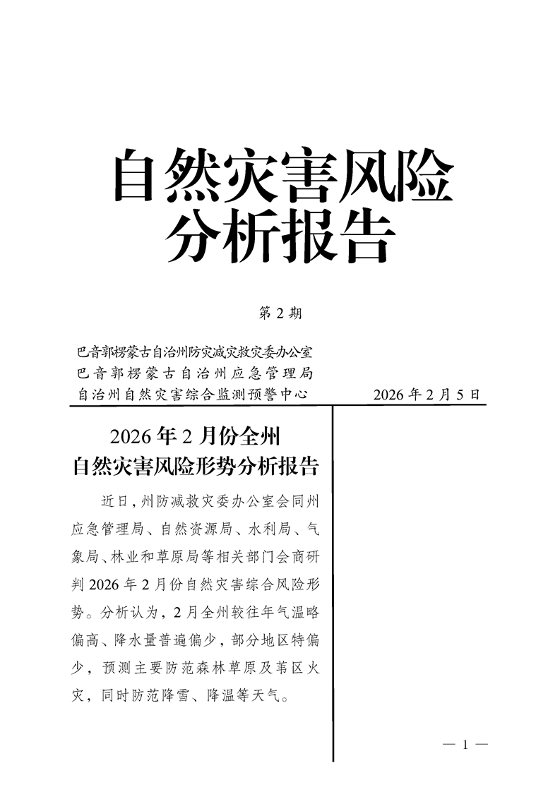 2026年2月份全州自然灾害风险形势分析报告