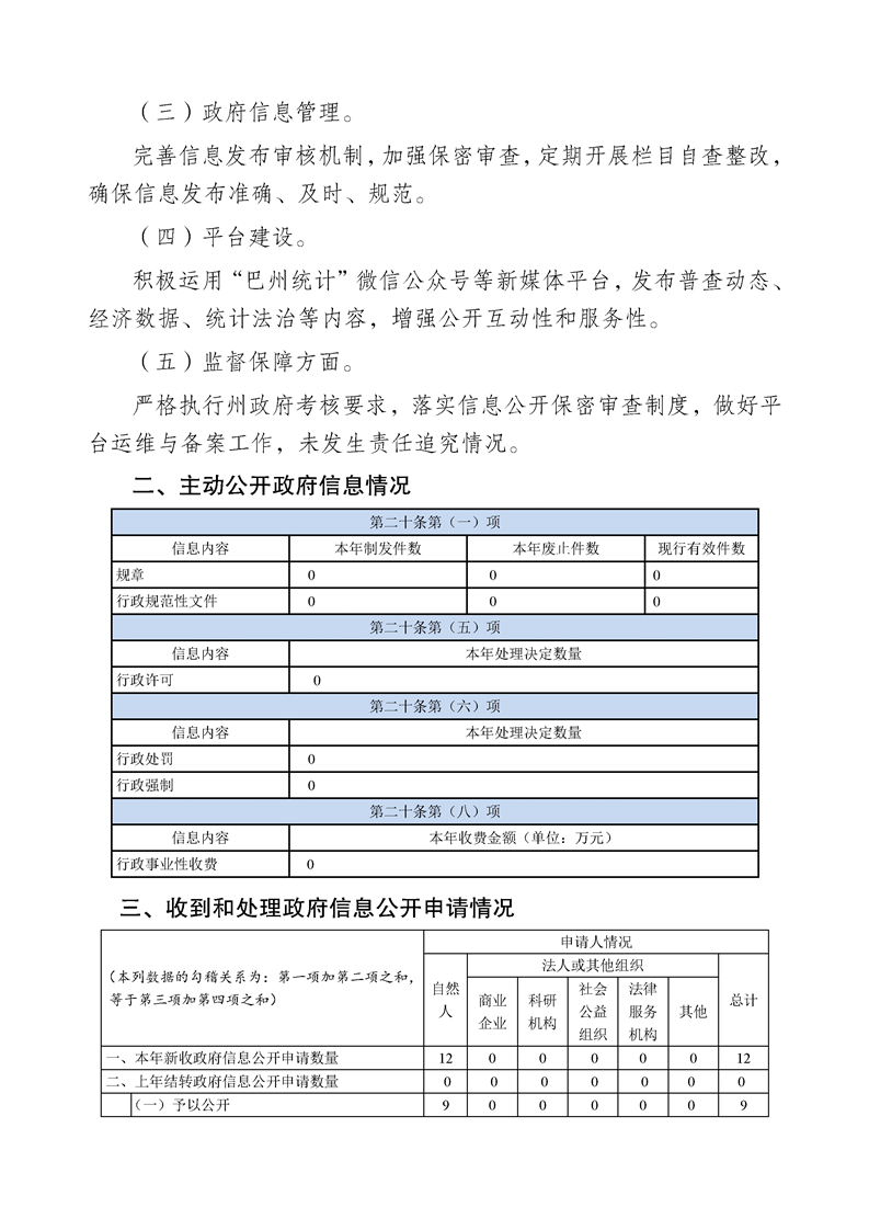 巴音郭楞蒙古自治州统计局2025年度政府信息公开工作年度报告