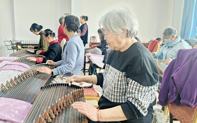 老年人在巴州老年大学学习古筝。(记者 李伶 摄)