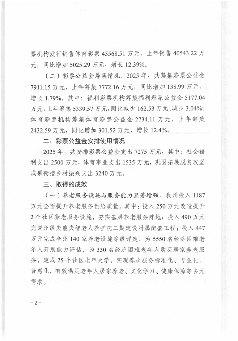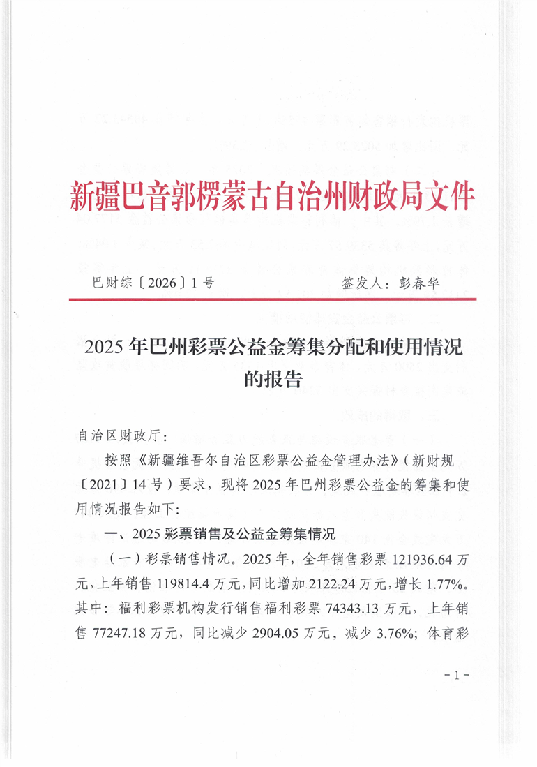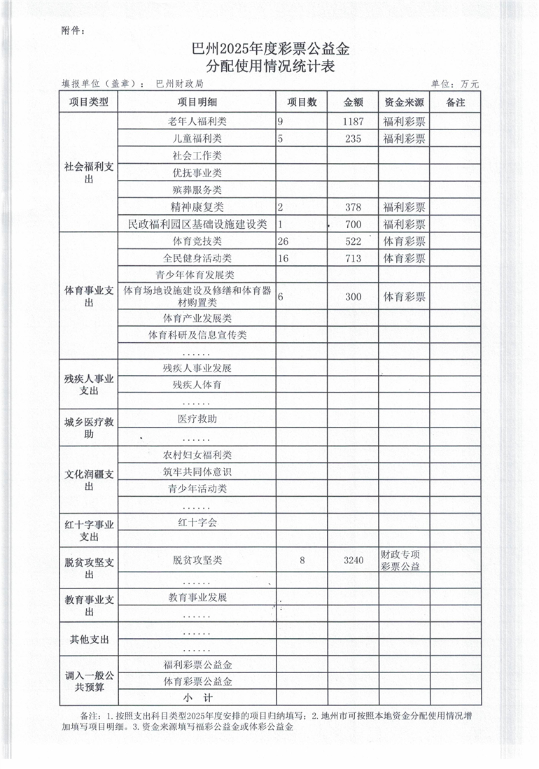 2025年巴州彩票公益金筹集分配和使用情况的报告