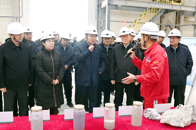 10月26日,自治州召开2025年经济社会高质量发展推进会。图为与会人员在若羌县卡尔恰尔萤石矿观摩,了解项目建设运行情况。(记者 杨晓东 摄)