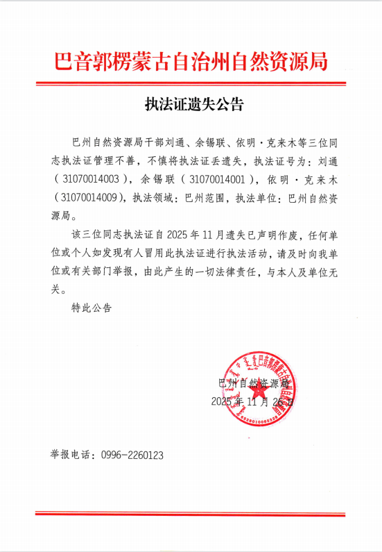 执法证遗失公告