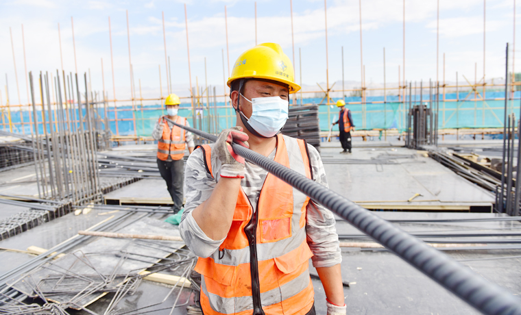 连日来,在巴州人民医院第二住院部和急救诊疗中心综合项目建设工地,施工人员战高温、斗酷暑,抢时间、赶进度,用辛勤劳动与汗水,全力推进项目建设。图为7月2日,施工人员在工地上忙碌。(记者 陈新 摄)