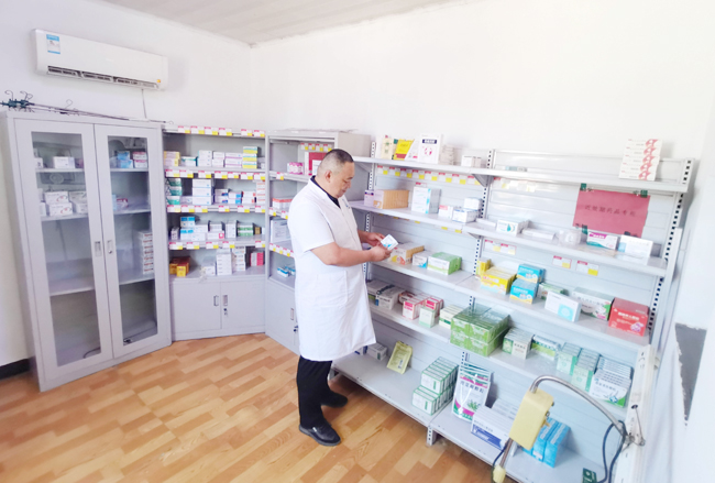 博湖县才坎诺尔乡莫盖图村卫生室有126种药(2024年7月5日摄)。(记者 廖军 摄)