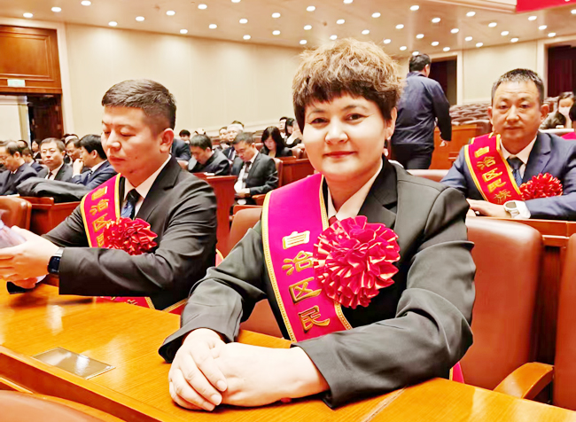 阿伊木汗·司马义力荣获“自治区民族团结进步模范个人”称号。(图片由库尔勒市永安街道提供)