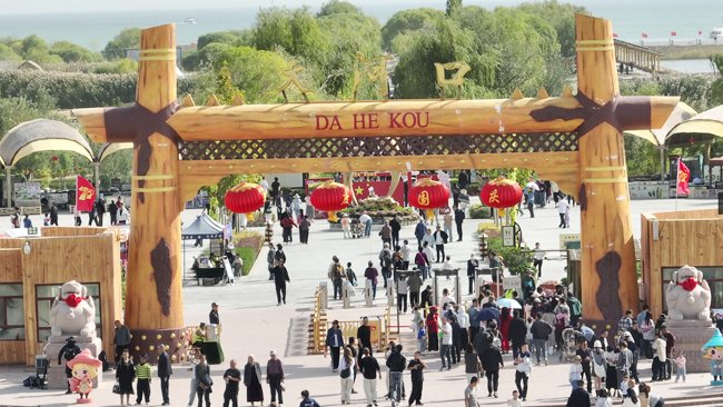 国庆假期,大河口景区游人如织。游客沉浸式体验湖光美景,乐享假期。(通讯员 青格乐 摄)