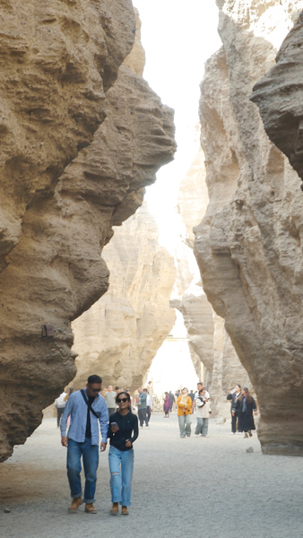 国庆假期,尉犁县罗布泊大裂谷景区迎来大批游客。作为独特的雅丹地貌,大裂谷谷壁形态万千下,游客们穿梭其中,对大自然的鬼斧神工惊叹不已。(记者 薛兵 摄)