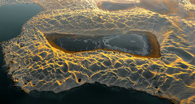 “这是沙漠与海子的天作之合!”马立新谈及拍摄感受时很激动,“北京‘鸟巢’是工业文明的传奇,而塔克拉玛干的‘鸟巢’是风沙岁月的杰作,在罗布湖畔,大自然亲手完成了这件举世无双的雕塑。”