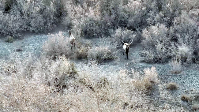 这是11月24日轮台县林业和草原局工作人员在塔里木胡杨林公园巡护途中用无人机拍摄到的塔里木马鹿。
