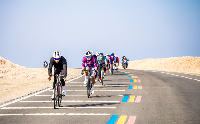 此次赛道设计充分体现“竞技性与观赏性并重”理念,包含平路、爬坡、下坡交替路况,串联湖泊、沙漠、湿地等资源。选手们在“湖—沙—山”特色赛道上展开激烈竞速,于骑行间尽览博斯腾湖的旖旎风光。