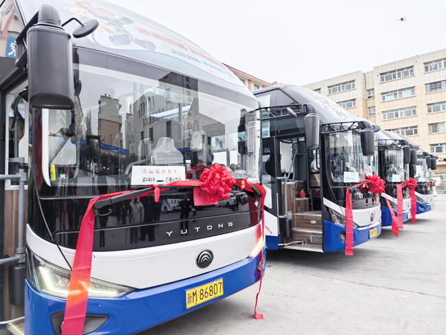 12月26日,在库尔勒新时州客运汽车站,天山巴士等待发车。(记者 景丽君 摄)