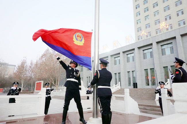 1月10日,巴州公安局举行升警旗仪式。(通讯员 丁杨 摄)