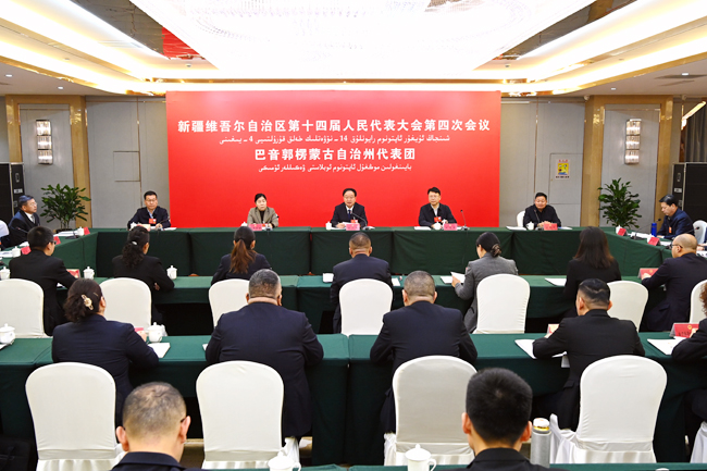 一月二十六日上午,自治区十四届人大四次会议巴州代表团举行全体会议。(特派记者 杨晓东 摄)
