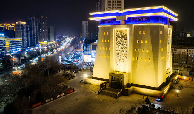 夜幕中的巴州博物馆。(记者 陈飞 摄)