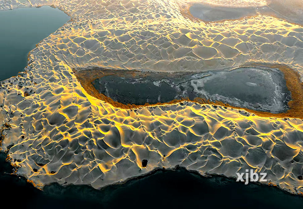 10月29日,巴州摄影家协会主席马立新在尉犁县塔塔秘境景区罗布湖采风拍摄沙漠胡杨海子时,意外定格了这一奇景。航拍视角下,千年胡杨枝干与金色沙海缠绵交织,沙漠被风沙雕刻出了形状,在碧蓝湖水的环抱中,宛如一座孤绝而壮丽的“鸟巢”静卧沙漠,奏响荒芜与生机、侵蚀与孕育碰撞的极致交响。