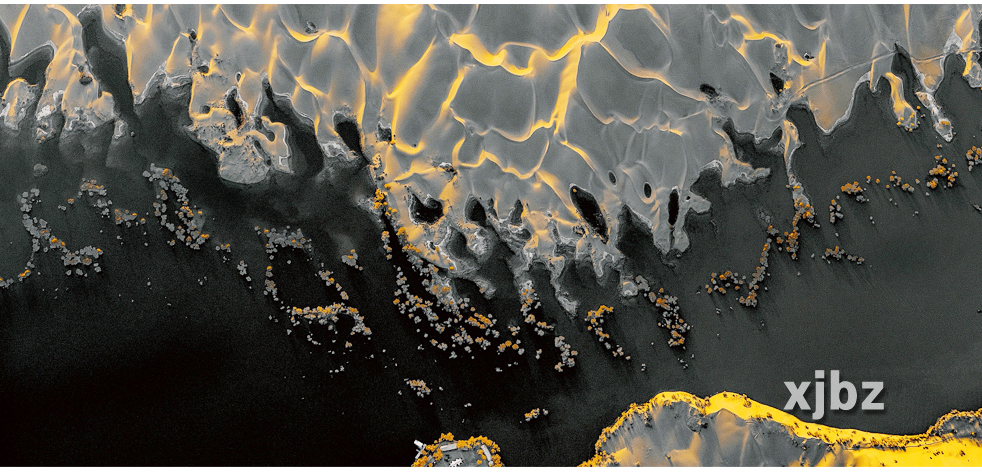 在长期风沙侵蚀与流沙堆积的作用下,沙漠湖泊逐步形成环状沙丘与水体共生的独特形态,而沙纹走向与光影投射的巧妙契合,更让“眼眸”质感愈发逼真。(文/杨柳青 图/马立新)