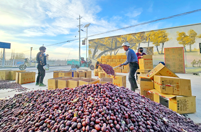 从零到亿,总产值突破51亿元的产业奇迹;从靠天到靠智,智能化设备替代了枣农的经验之谈;从单一种植到全链融合,红枣深加工生产线与枣园民宿共舞;从无名特产到国家品牌,区域公用品牌创建让戈壁“红果”闪耀全国榜单……