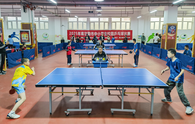 在库尔勒市第二中学篮球赛场,球员们默契配合、突破投射、顽强防守。在库尔勒市第七小学乒乓球赛场,乒乓小将们身姿矫健,转体、挥拍、击打一气呵成,快攻、旋球、弧线球轮番上演,展开了一场场精彩对决。