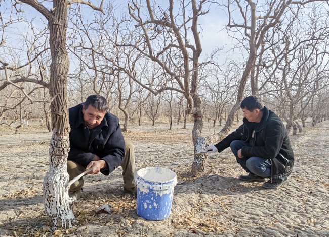 吐尔逊·达曼说:“枣树涂白不仅能防冻抗寒,还能有效预防来年病虫害。我要把这些技术都掌握好,争取明年有个好收成。”