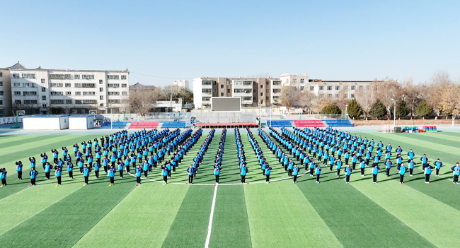 “一二三四!”下课铃声响起,瞬间打开博湖中学全校师生的活力开关,伴随着整齐有力的口号,学校1000余名师生在操场集结开展特色大课间活动。